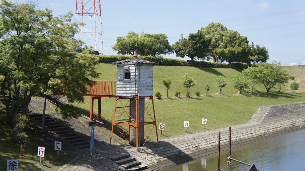 長良川の河口から上流へと遡ること12km、愛知県愛西市にある船頭平閘門(せんどうひらこうもん)は、明治時代の木曽三川分流工事によって生じた、木曽川と長良川を結ぶ運河水面の高低差(1mほど)を克服するために設置されたパナマ運河式の閘門。国の重要文化財に指定されています。