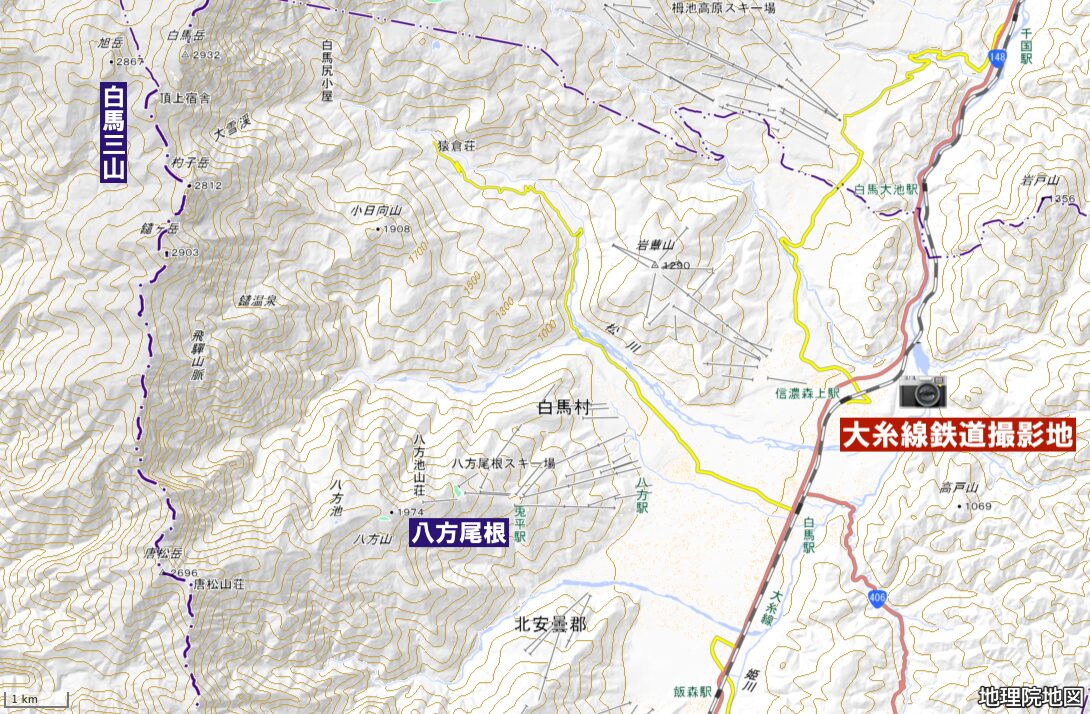 撮影ポイントは数ありますが、取材班が選んだのは、大糸線鉄道撮影地(信濃森上〜白馬大池間)旧国道。