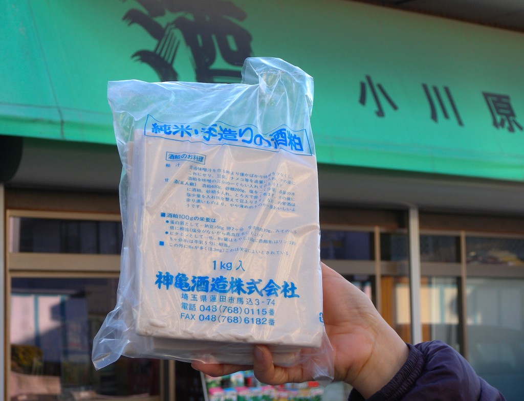 取材班が、今回使った酒粕は、埼玉県蓮田市の取材で購入した神亀酒造の酒粕です。