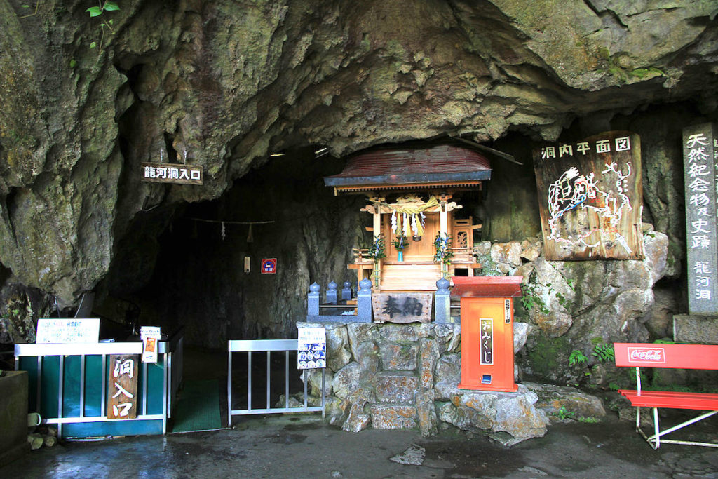 龍河洞の洞内には、鍾乳石や石筍(せきじゅん)、石柱などが発達し、高さ11mの洞内最大の鍾乳石・天降石や千枚岩、高さ6m・幅4mもの鍾乳石・玉簾の滝、落差11m、洞内最大の滝・記念の滝、奇怪な石筍に囲まれた万象殿など見どころも豊富。