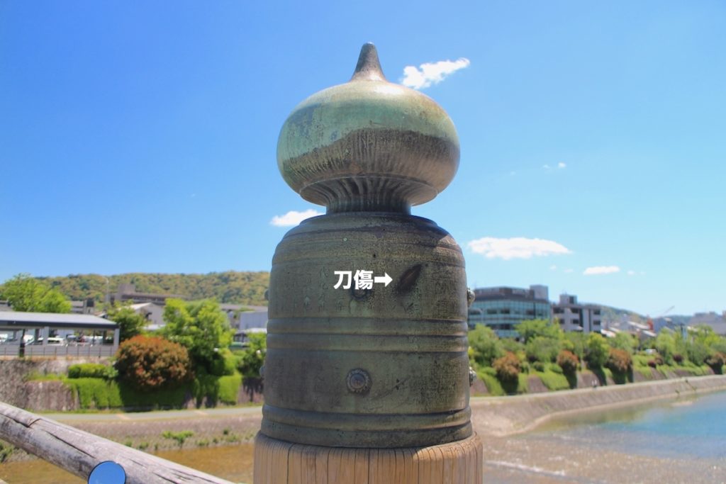 三条大橋の擬宝珠に刀傷が!