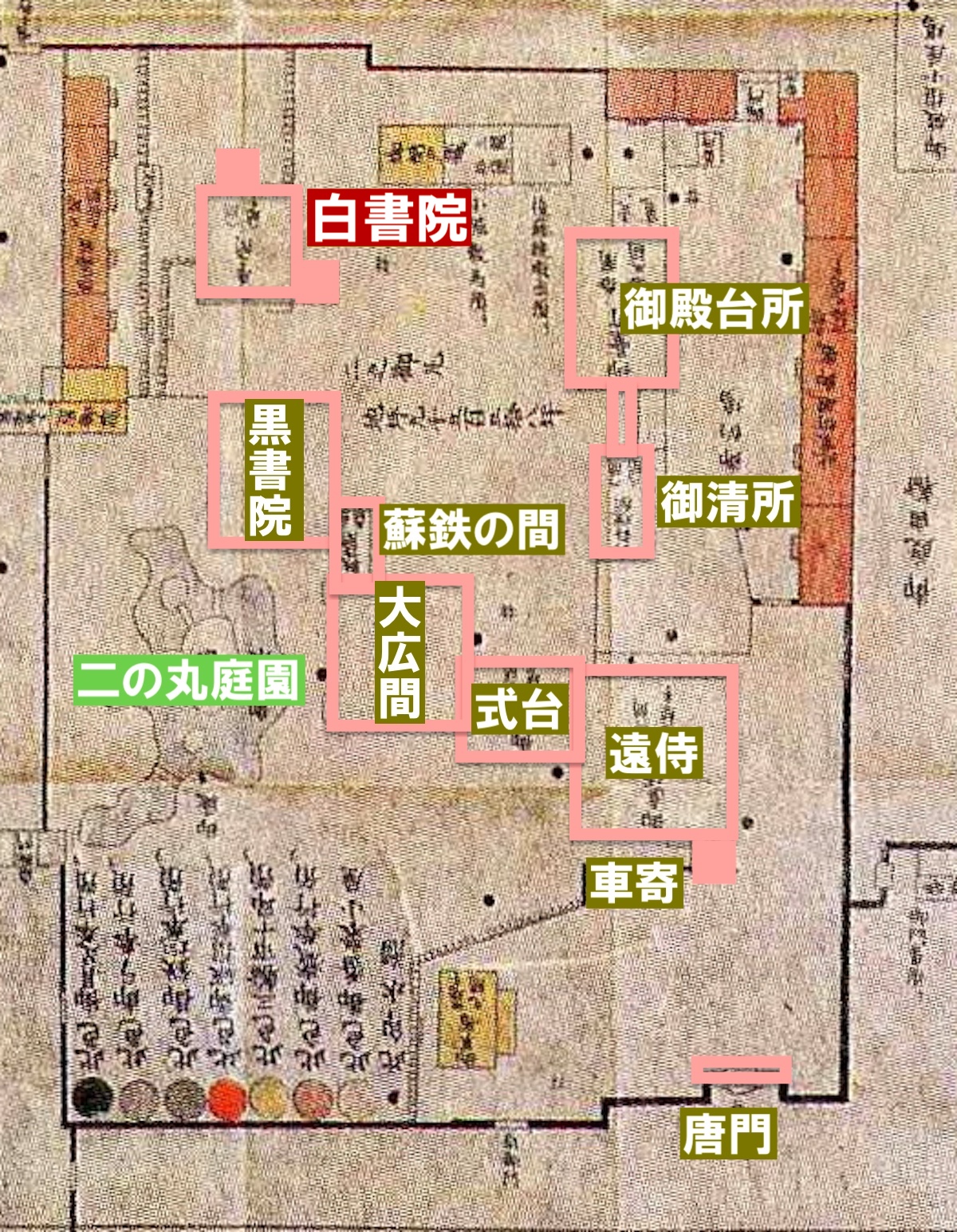 江戸時代には将軍の生活空間、明治以降は天皇の御座所に