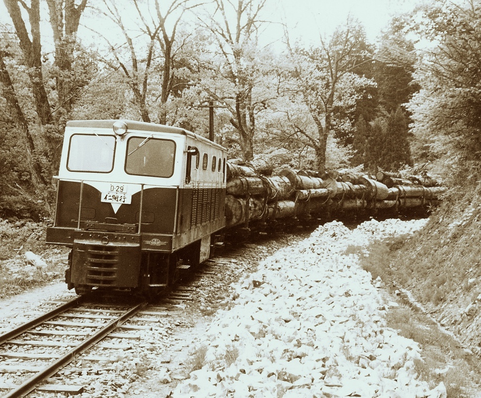 それまでの材木の川流し(水量や天候に左右され、増水で丸太が流出する、ダムの建設で川流しができなくなるといった問題がありました)に変わって、森林鉄道が敷設されています。