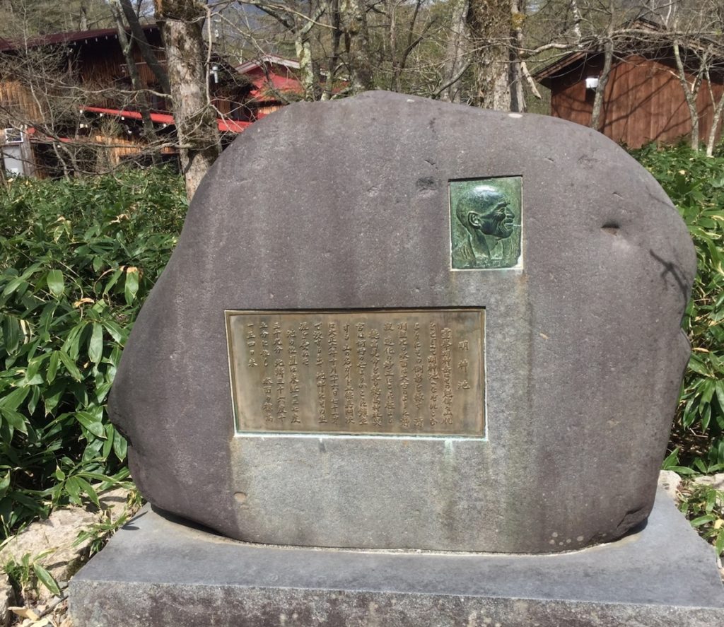 嘉門次小屋の前には昭和34年に上條嘉門次のレリーフも築かれています。