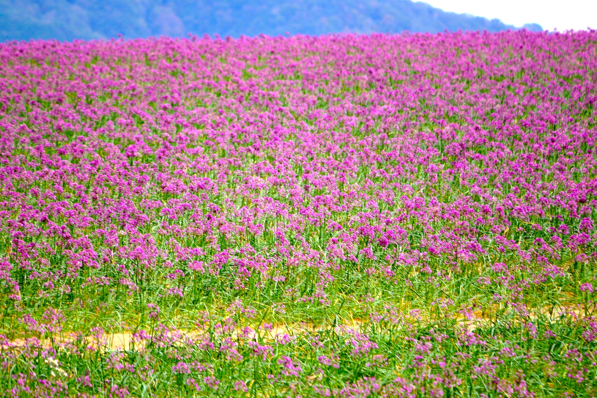 鳥取県鳥取市福部町にある湯山地区らっきょう畑。鳥取砂丘東側のらっきょう畑が、例年10月下旬〜11月上旬に美しい花を咲かせます。紫色の花が一斉に咲き誇り、ラベンダー顔負けの「紫色のじゅうたん」が誕生するのです。新しい観光名所として注目ですが、農作業の邪魔にならないようにマナーを守って観賞を。