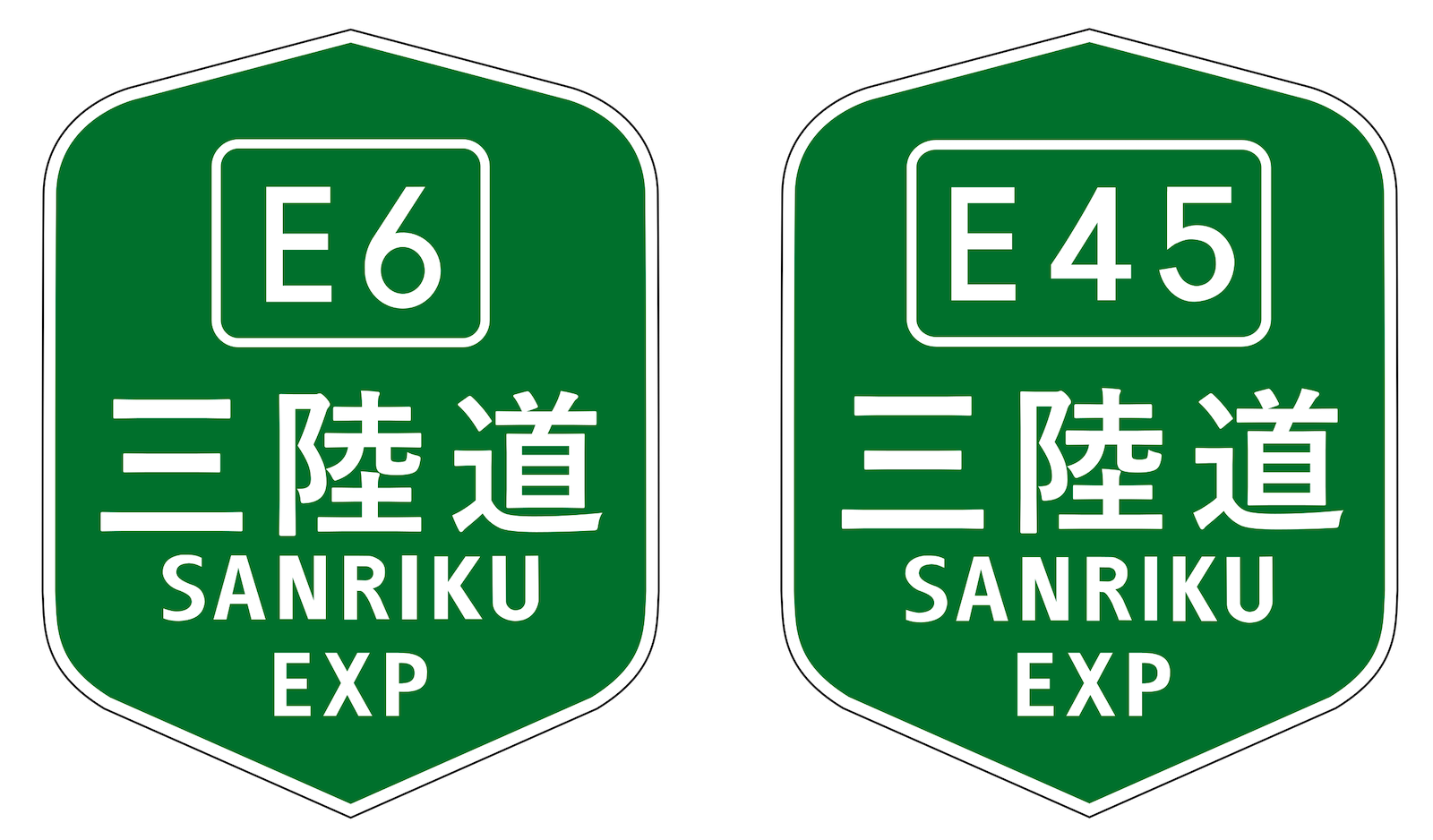 道路案内は、無料区間は三陸道、有料区間は三陸自動車道で、英語表記はともにSANRIKU EXP(SANRIKU EXPRESSWAY)。