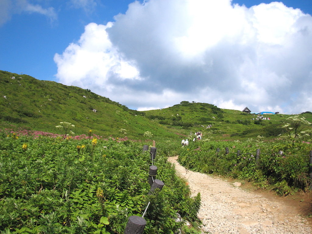 ちょっと急坂ですが中央遊歩道コース(山頂まで徒歩20分)、西遊歩道コース(山頂まで徒歩40分)、東遊歩道コース(下り専用・駐車場まで1時間)の3つのコースはすべて山頂に咲く高山植物を観察できます。