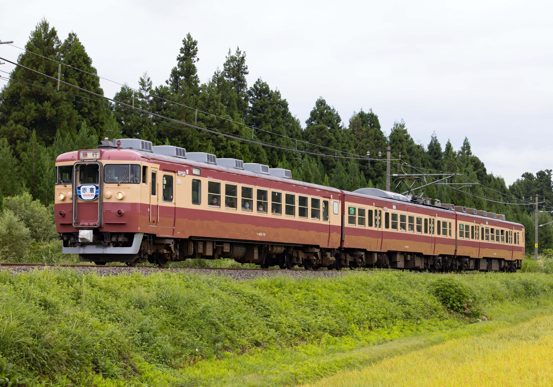「国鉄型急行」の国鉄413系・国鉄455系は、当時の社長だったローカル鉄道の「再生請負人」・鳥塚亮(とりづかあきら/現・大井川鐵道)社長が、JR西日本から購入し、あえて往年の国鉄車両の雰囲気を楽しめるようにと若干の改造を加え、赤色だった塗装を、「交直流急行色」に塗り替え、観光急行・快速として運用したもの(現在、観光急行は乗車券のみで利用可能)。