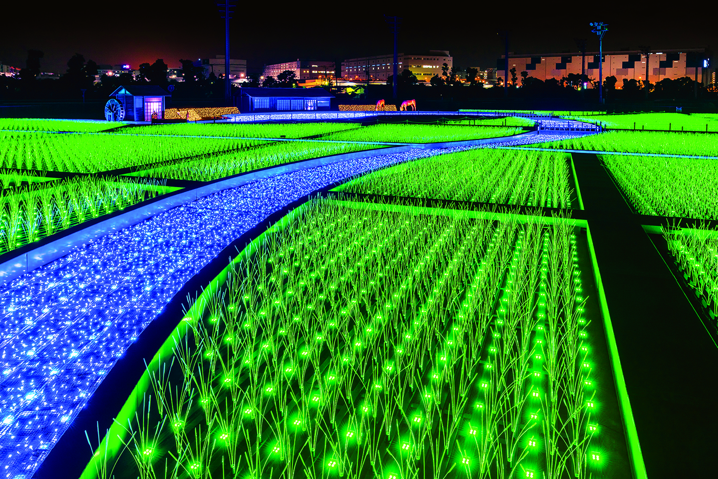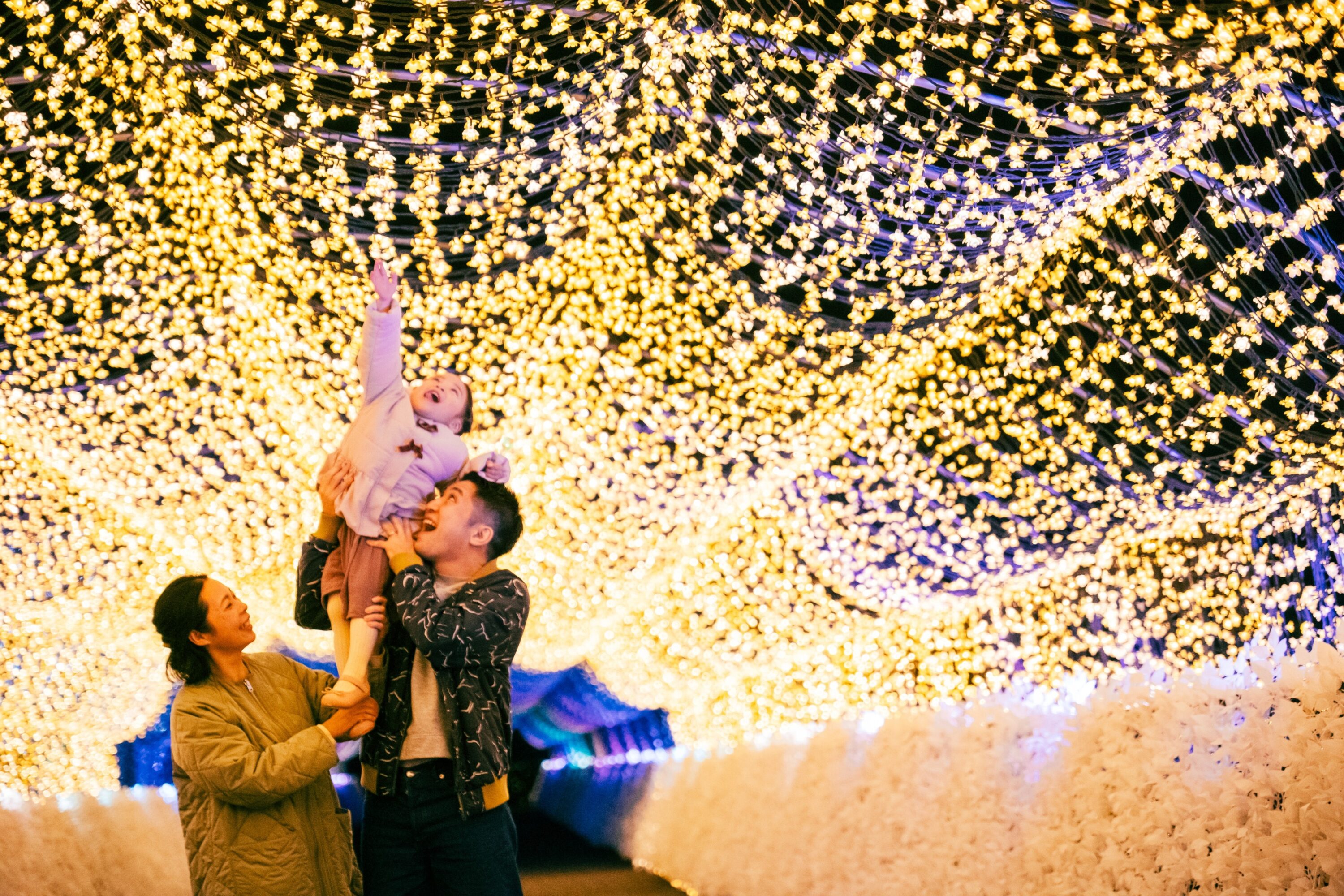 イルミネーションが音楽に連動して点灯する「トゥインクル・ライトショー」は2025年、リニューアルを実施し、一球一球が桜の花びらの形という長さ100mの光のトンネル「江戸桜トンネル」、田園・水田をテーマにしたイルミネーション演出「日本原風景」など和のイメージも。