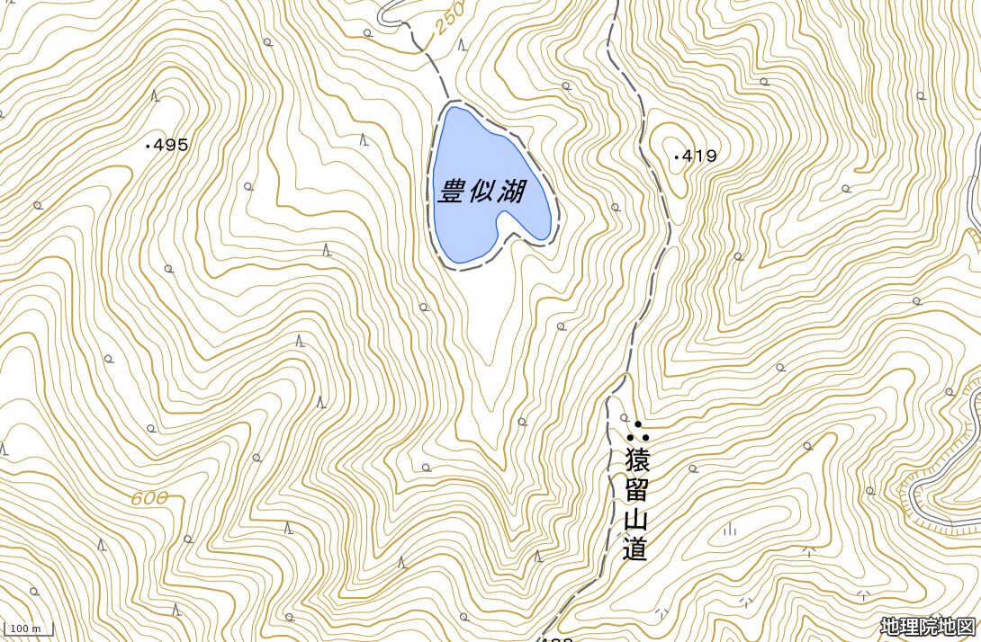 国土地理院の地形図に豊似湖の東を通る山道に猿留山道(さるるさんどう)と記されていますが、寛政11年(1799年)、幕府の公金で開削された蝦夷地最初の山道(公道)です。