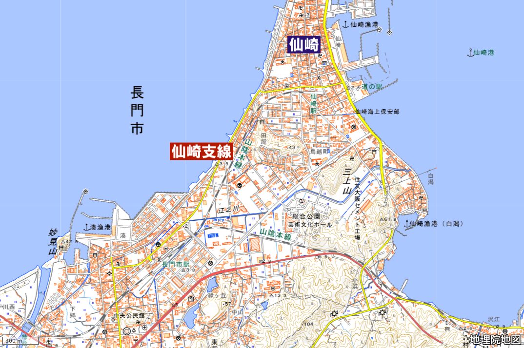 新幹線の延伸開業で、北陸本線、東北本線、信越本線などは分断化されるなか、日本一長大な路線となるのがJR西日本の山陰本線。京都駅(京都府)〜幡生駅(山口県)の673.8kmですが、地図を見てみると、山口県内で長門市駅から青海島方面に伸びる支線が。これが長門市駅〜 仙崎駅(2.2km)の仙崎支線です。